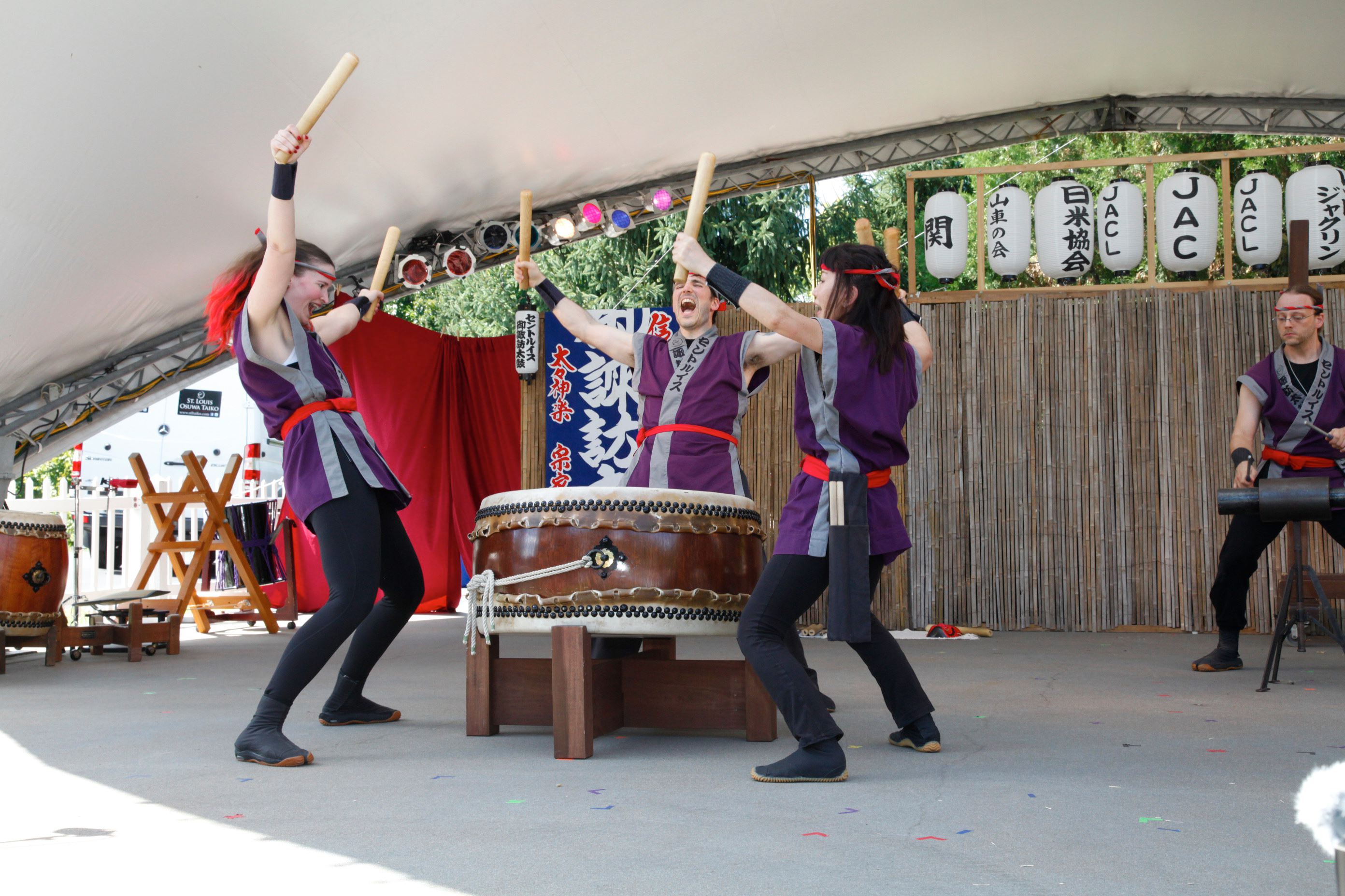 Our largest show each year is at the Japanese Festival at the Missouri Botanical Garden on Labor Day weekend. Thousands attend the festival, which has fun activities for all ages, including the Dashi procession, where children pull our Dashi, or portable drum stage on wheels, through the garden.